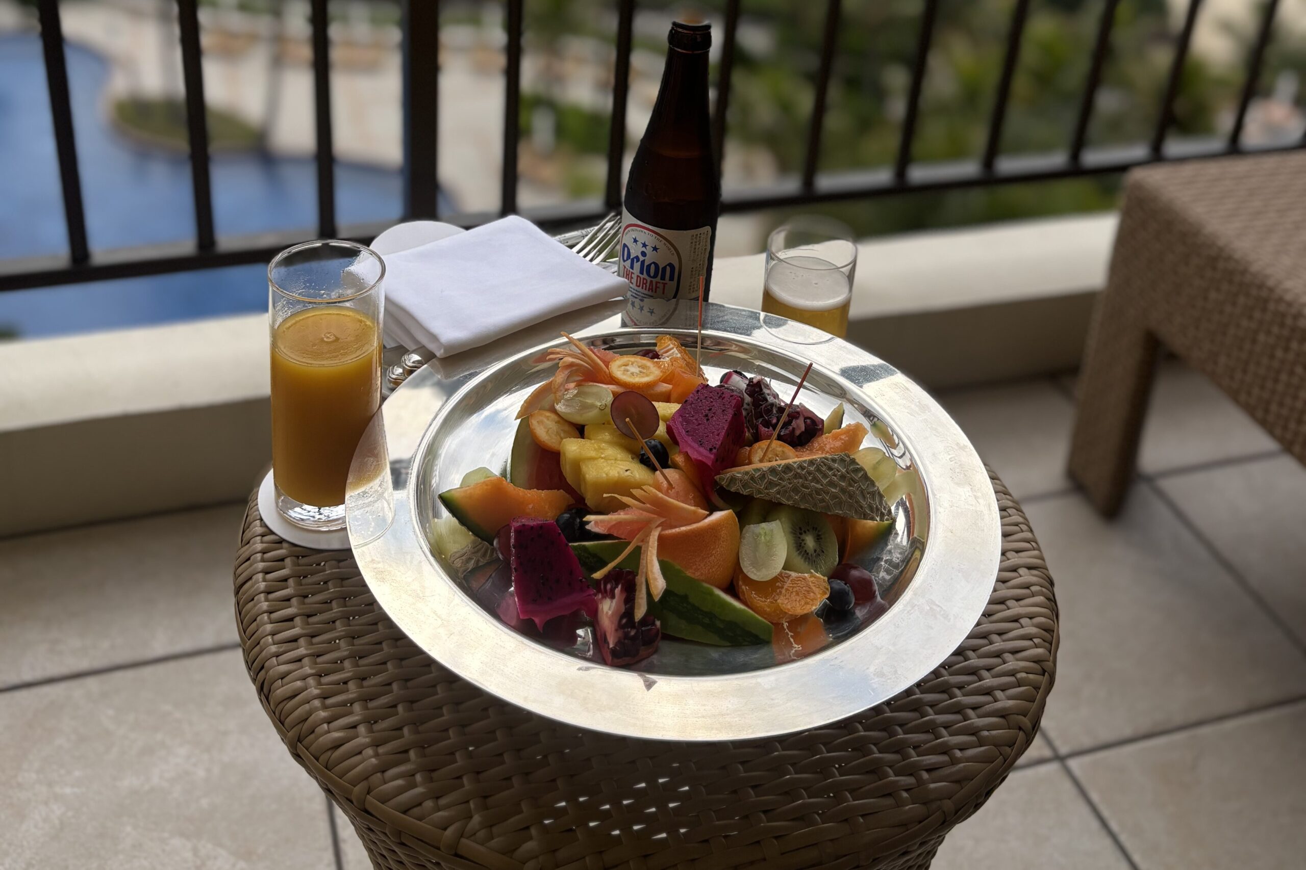 マンゴージュースとオリオンビールとともにいただきました。
