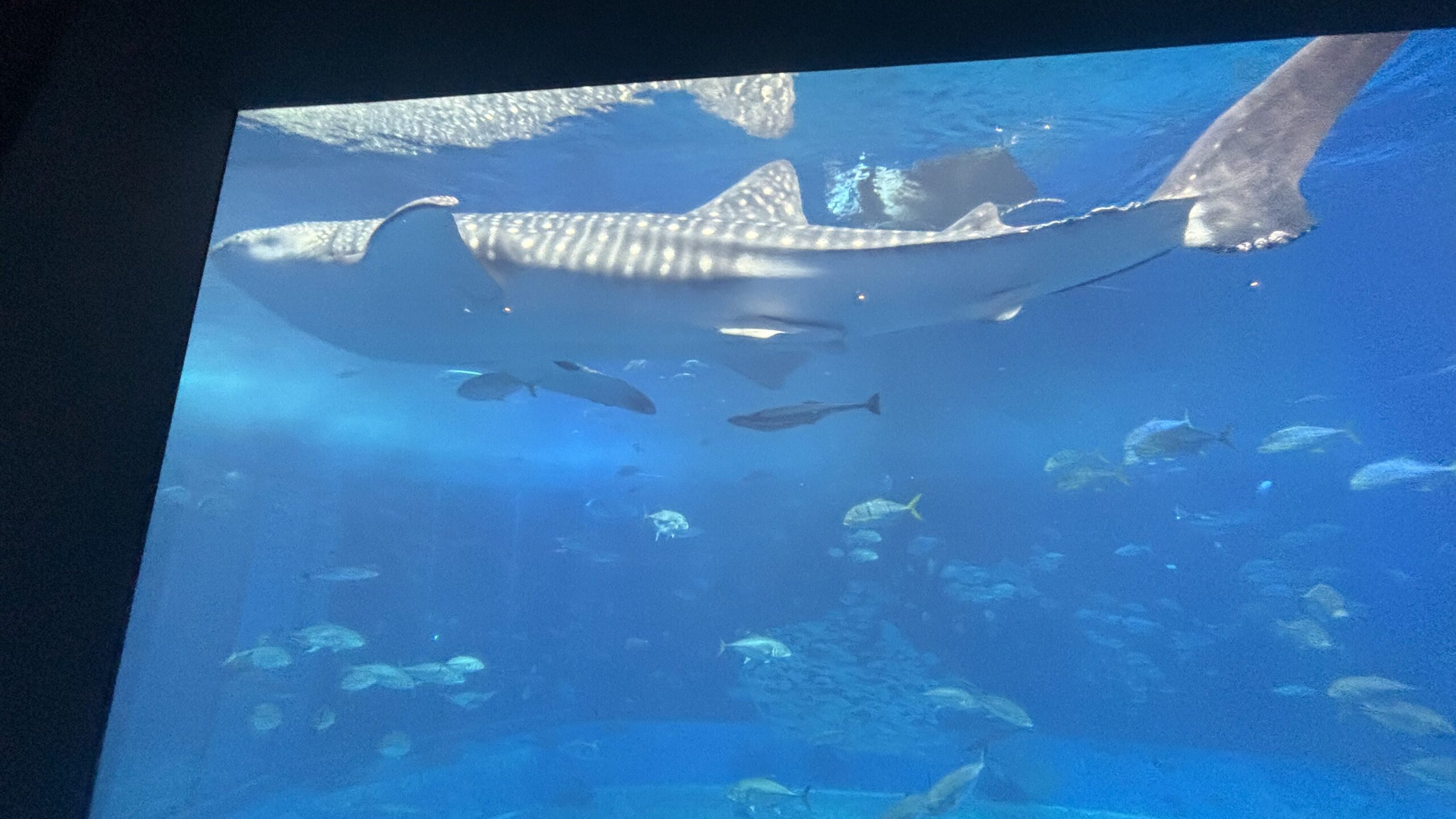 巨大なアクリル越しに見るジンベイザメは水の壁を感じさせませんでした。