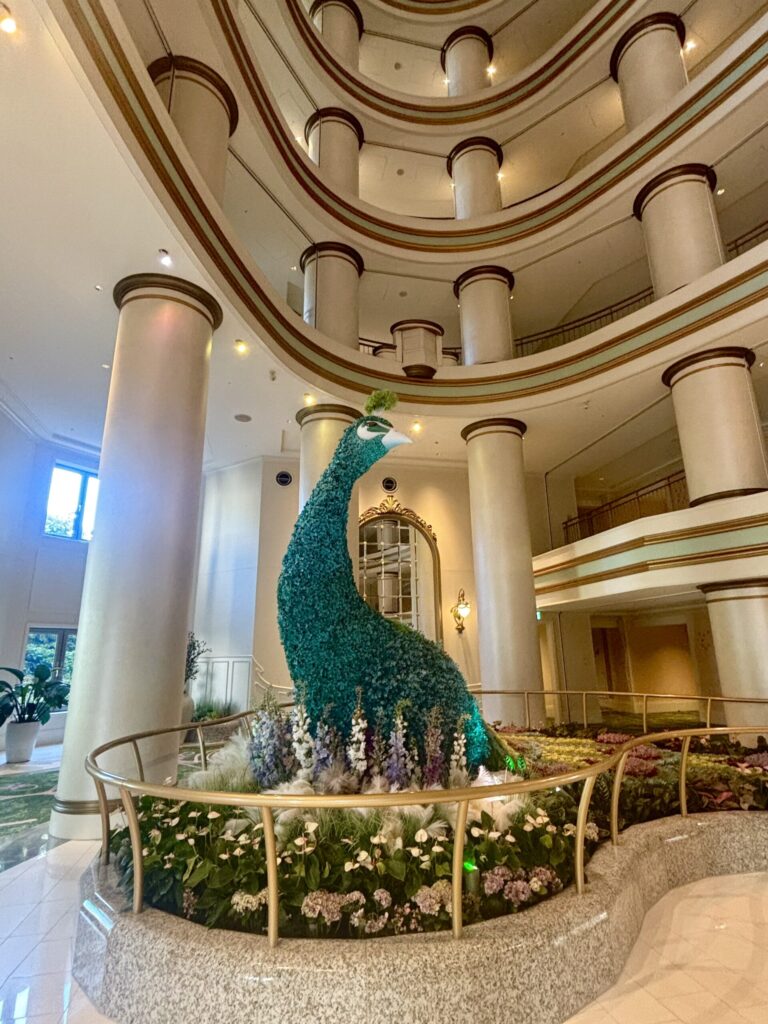 ホテル内は藤の花をテーマにしたアートがちりばめられており、この鳥さんのほかにも本物の藤の花が待ち受けていてくれました。